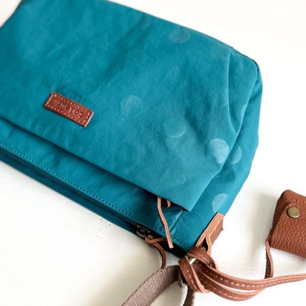 ドット柄デザインが可愛いナイロンショルダーバッグ。