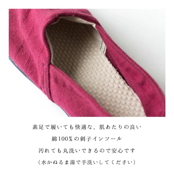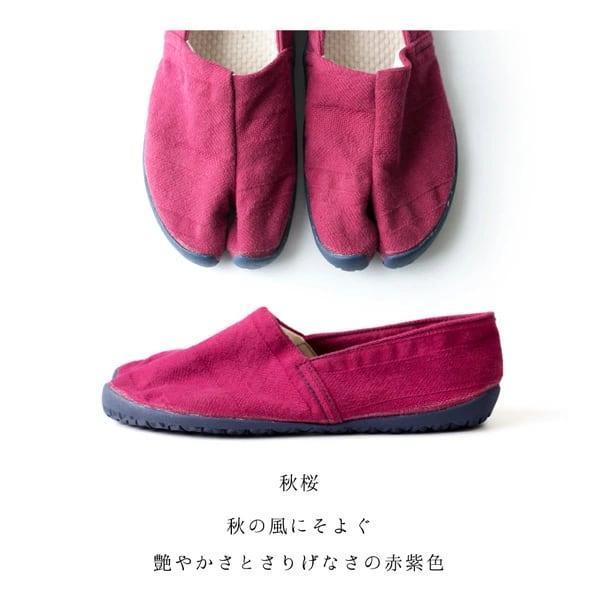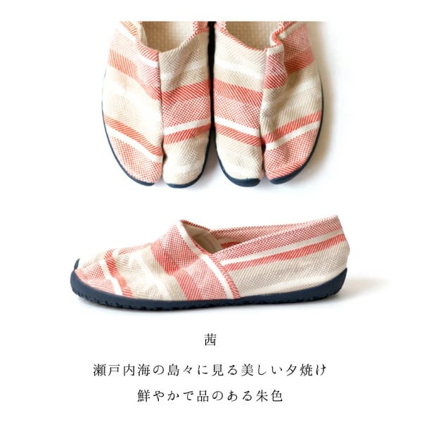 熟練の職人たちの手により一つひとつ丁寧に手作業で作り上げられた「たびりら」は、靴の窮屈さをなくし、素足に近い履き心地を実現しています。