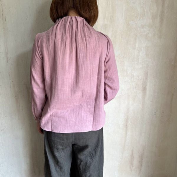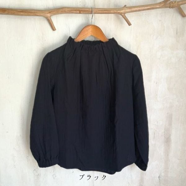 ダブルガーゼゴム入りタックネックブラウス