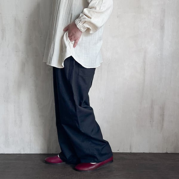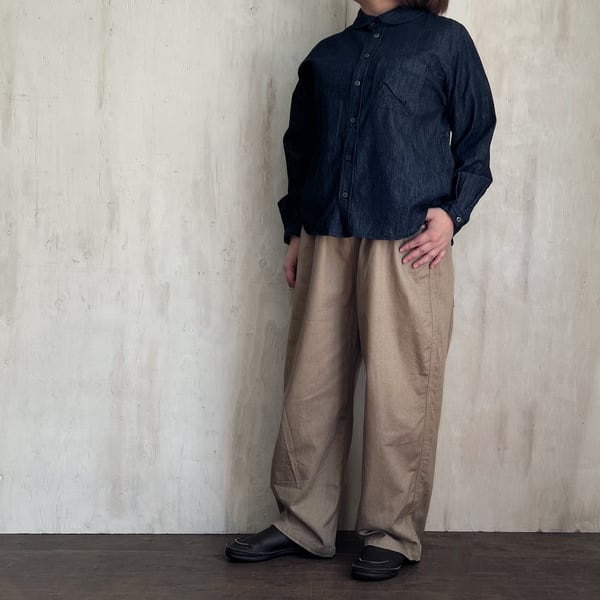 ナチュラルな風合いと、ストンと落ちる美しいストレートシルエットが特徴です。