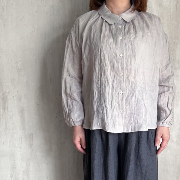 リネン重ね衿長袖ブラウス