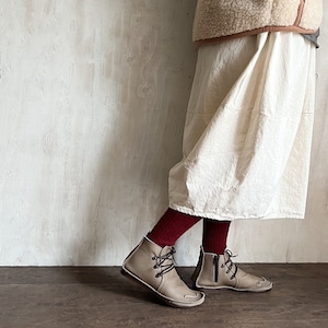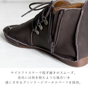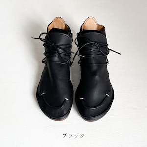 袋縫い サイドファスナー レースアップブーツ