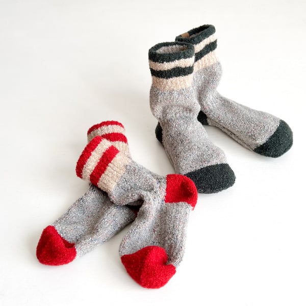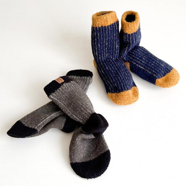 手袋づくりの技術を活かして編み立てた、やさしい肌ざわりのあったか靴下です。