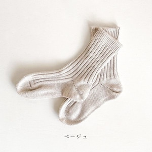 ウールのぬくもりとコットンのやさしい肌ざわりを合わせた、自然素材にこだわったリブソックスです。