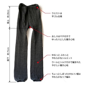 化学繊維を使わずウールとシルクのみでゆったり編みたてたレギンスです。<br>
