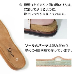 日本人の足に合わせた形に作っているので、幅広・甲高・外反母趾の方の足にも馴染みます。