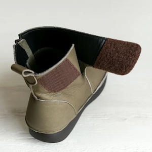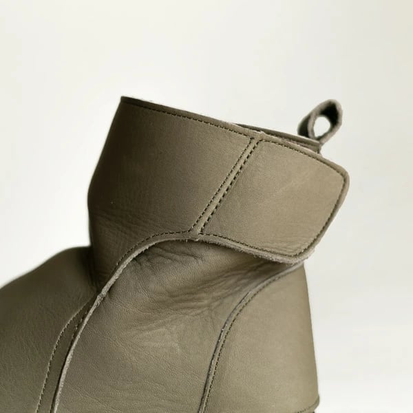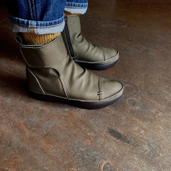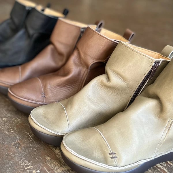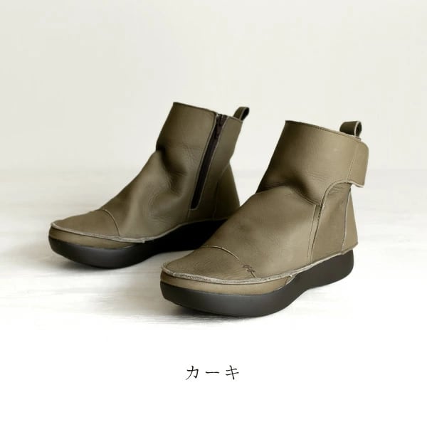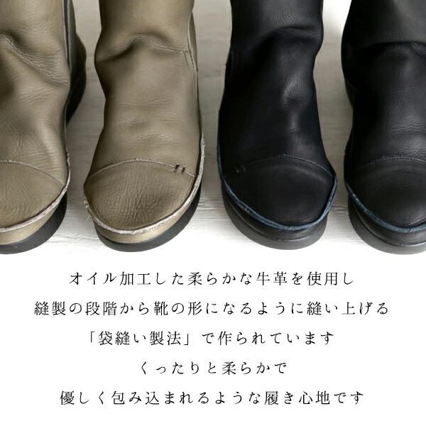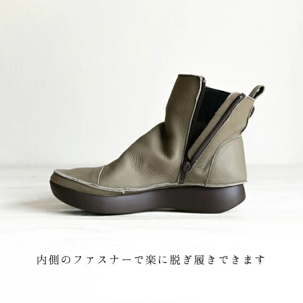 袋縫いサイドファスナー ルーズフィットレザーブーツ
