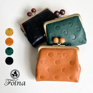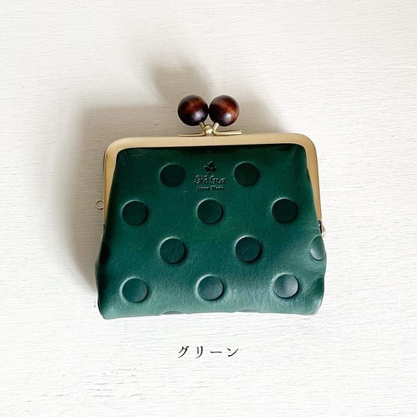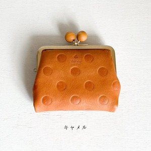 ウッドボール ドット型押しがま口二つ折り財布
