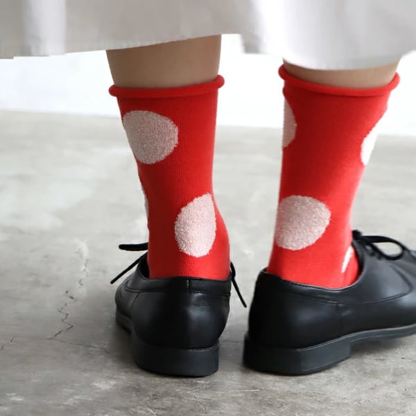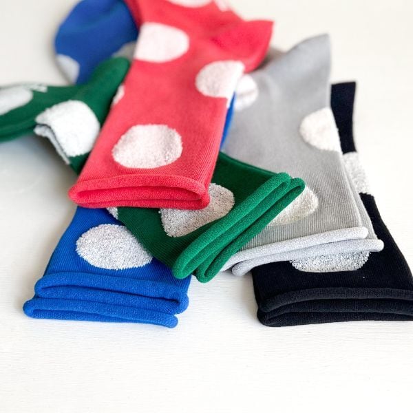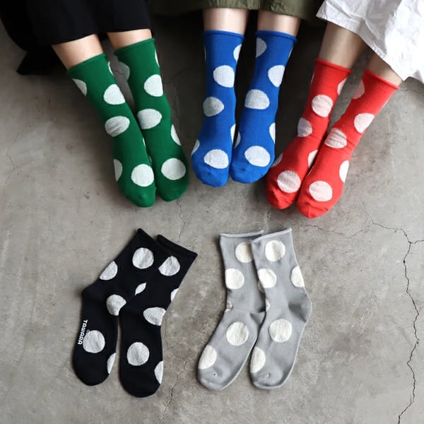 毎日のコーディネートにさりげないアクセントを添えるドットクルーソックス。