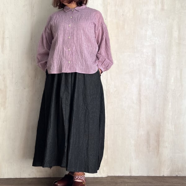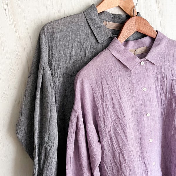 洗いをかけたような自然なシワ感と、やわらかく軽やかな風合いが魅力の一枚です。
