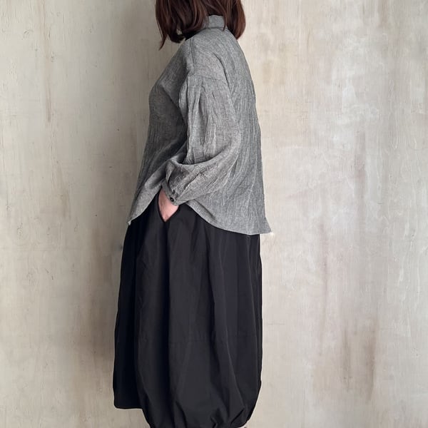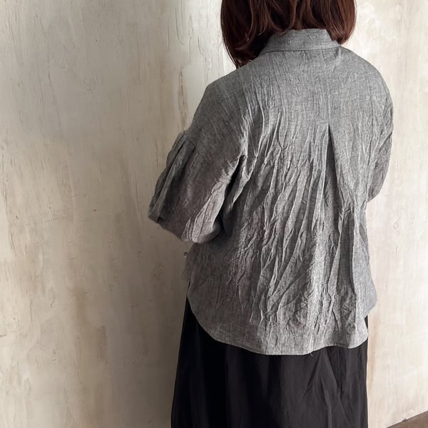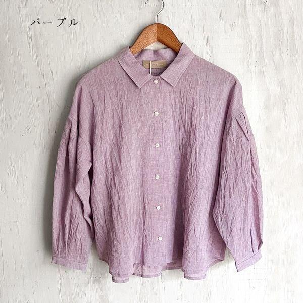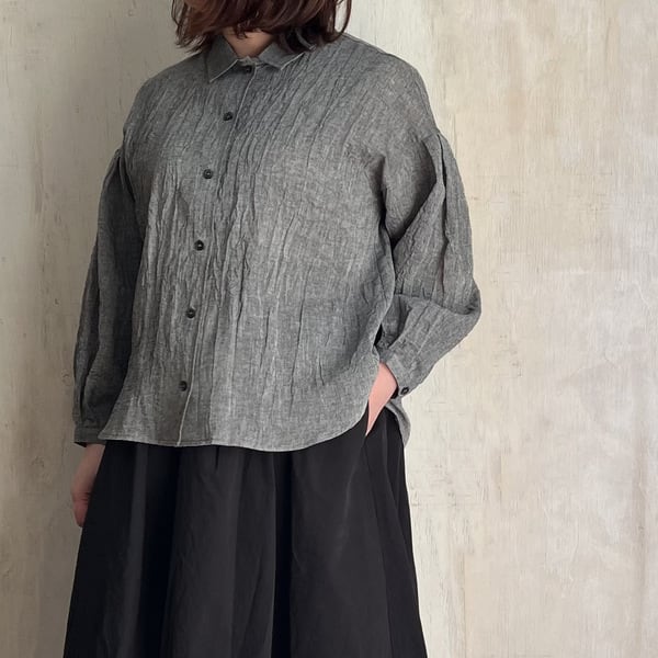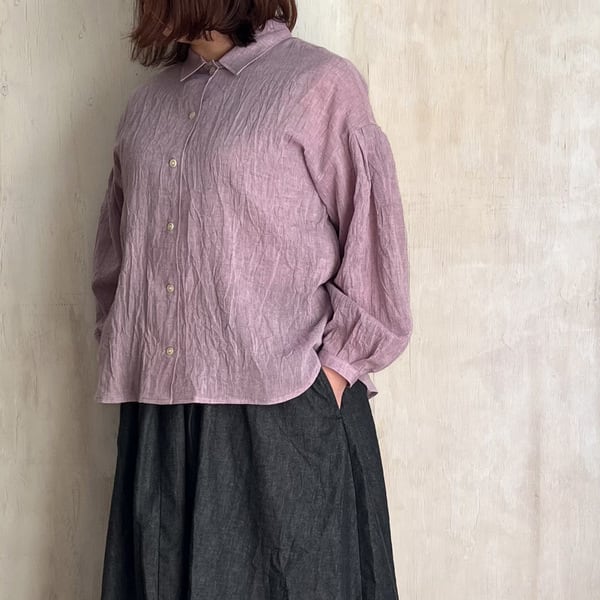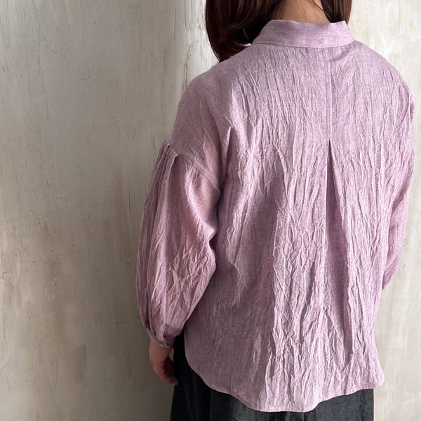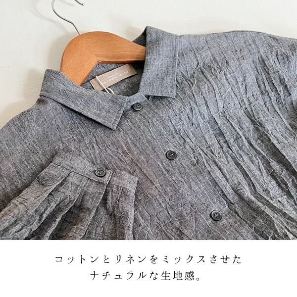 コットンリネン ボイルワッシャーシャンブレー 袖タック ブラウス