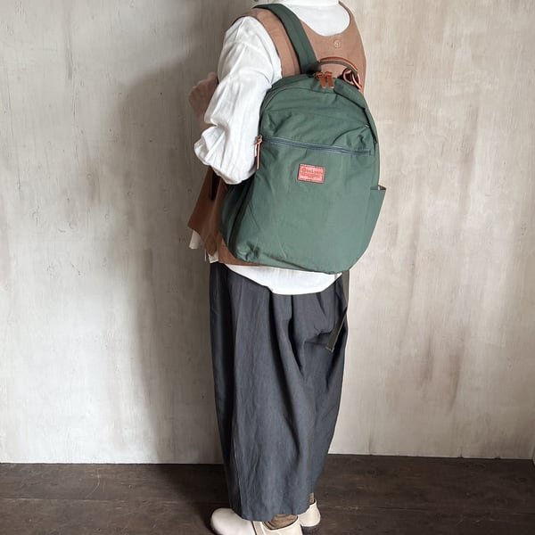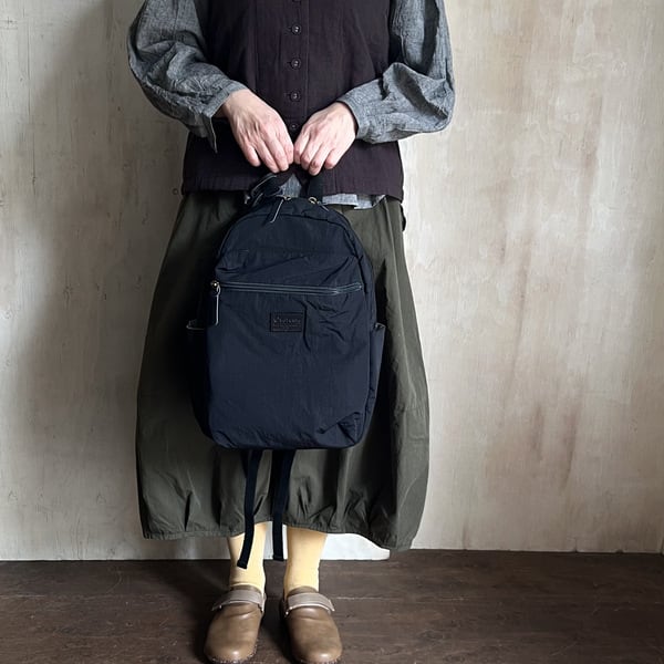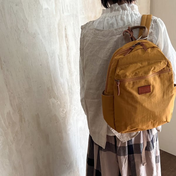 ナチュラルなシワ感が魅力のリンクルナイロン素材を使用した、軽やかな使い心地のリュック。