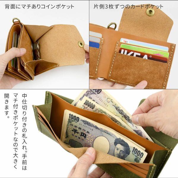 コンパクトでありながら、紙幣・カード・コインをすっきり収納できる実用的な設計。