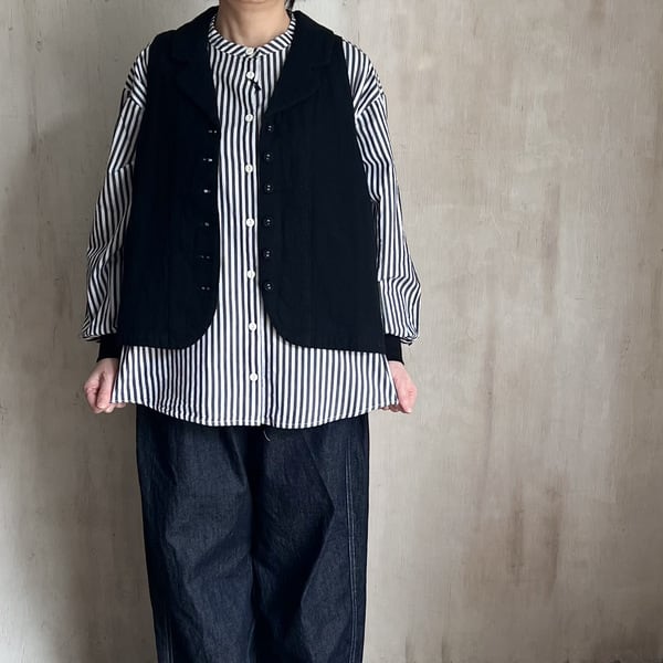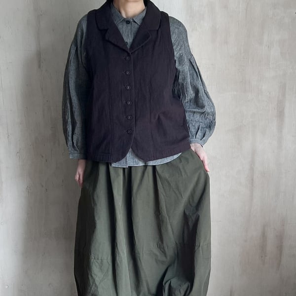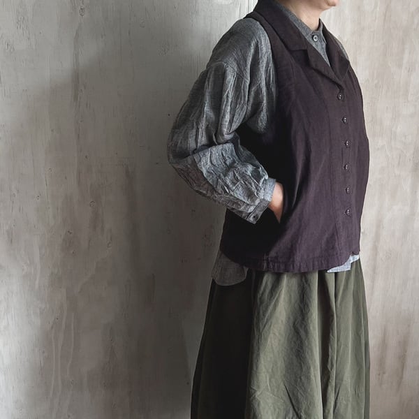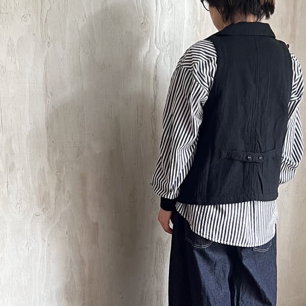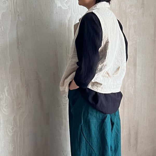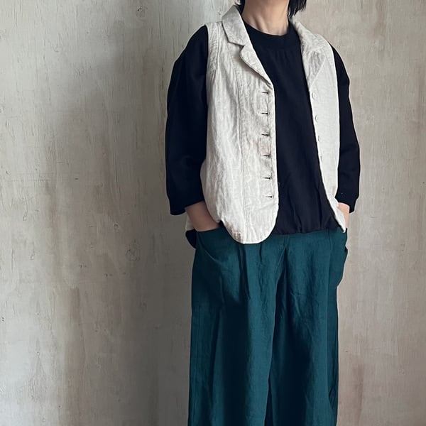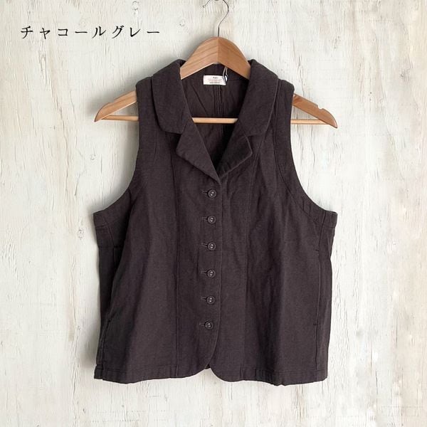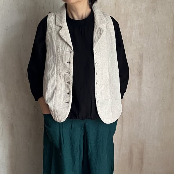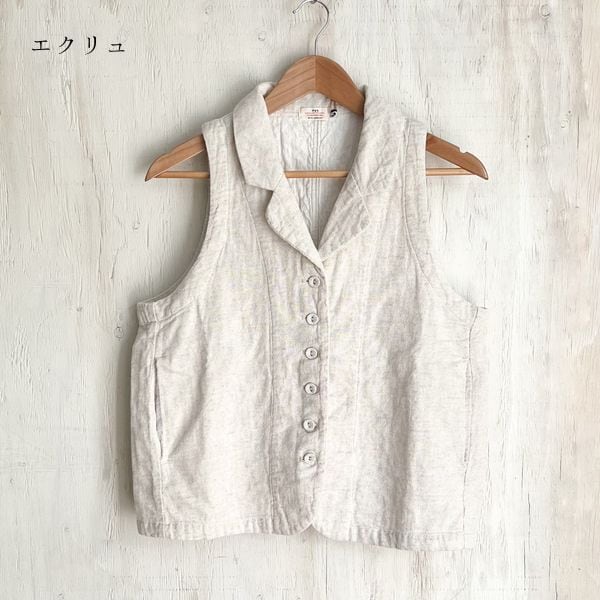 ナチュラルな風合いが魅力の綿麻接結素材を使用した、軽やかな着心地のテーラーベストです。