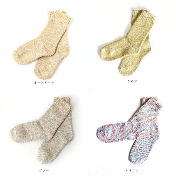 昔ながらの丸胴編みでゆったりと編みこまれたミックス糸で編みこまれたカラフルなソックスです。