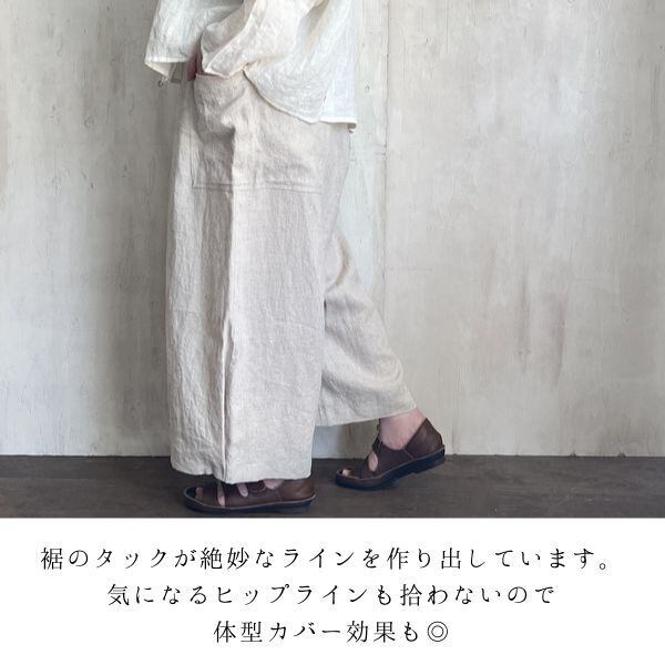 程よいボリューム感とリラックス感のある、リネン100%素材のタックパンツです。